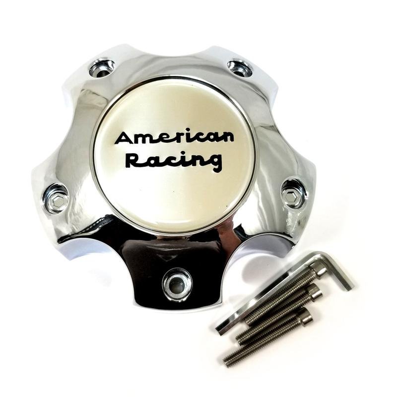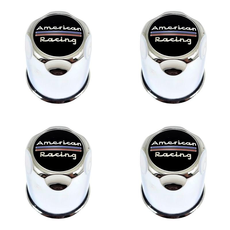 4x American Racing Chrome Wheel Center Hub Caps Push-Thru for 4x4.25 4x108 4x4.5 4x114.3 5x4 5x101.6 AR62 Outlaw II VN69 Ansen Sprint