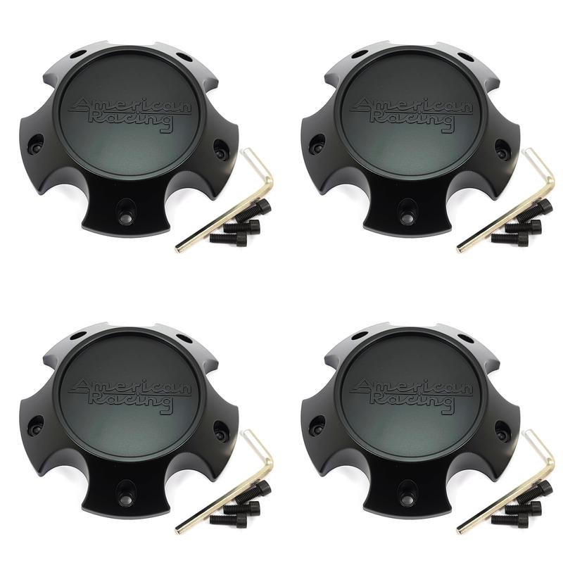 4x American Racing Satin Black Wheel Center Hub Caps 2-7/8"OD Snap-In for 5x4.5 5x114.3 5x120 6x135 6x5.5 6x139.7 6x120 AR912 TT60 AR914 TT60 Truck