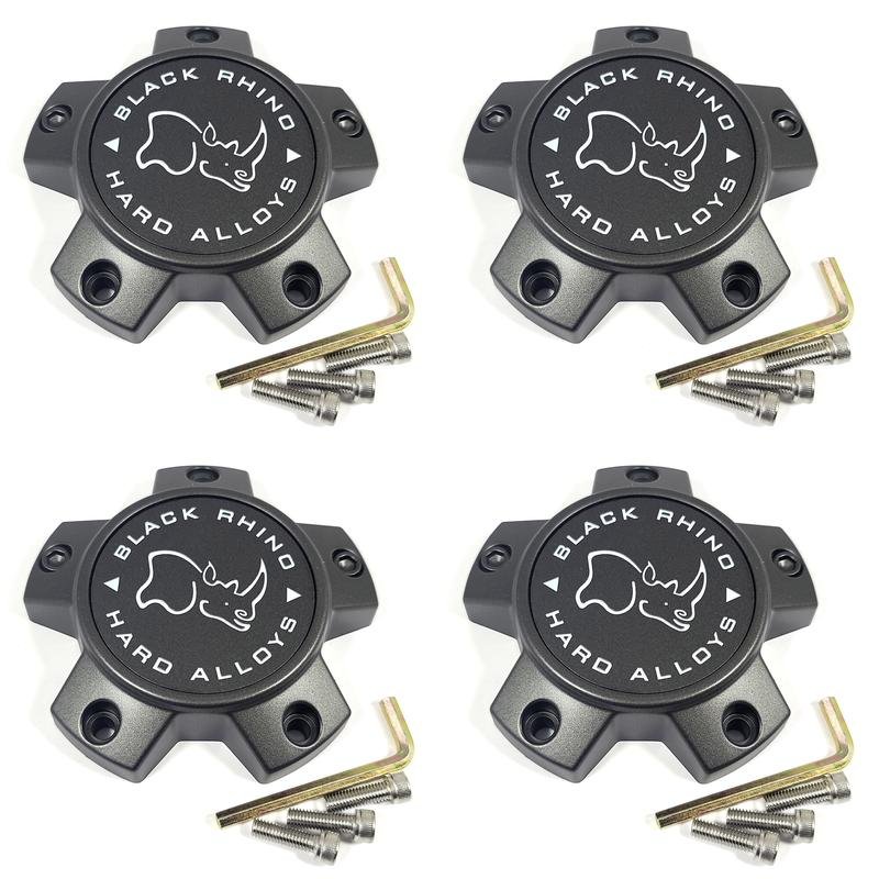 4x Black Rhino Hard Alloy Wheels (by TSW) Matte Gray Wheel Center Hub Caps 2-5/16"OD Snap-In for 5x100 5x4.5 5x114.3 5x4.25 5x108 5x112 5x120 Sandstorm Arches