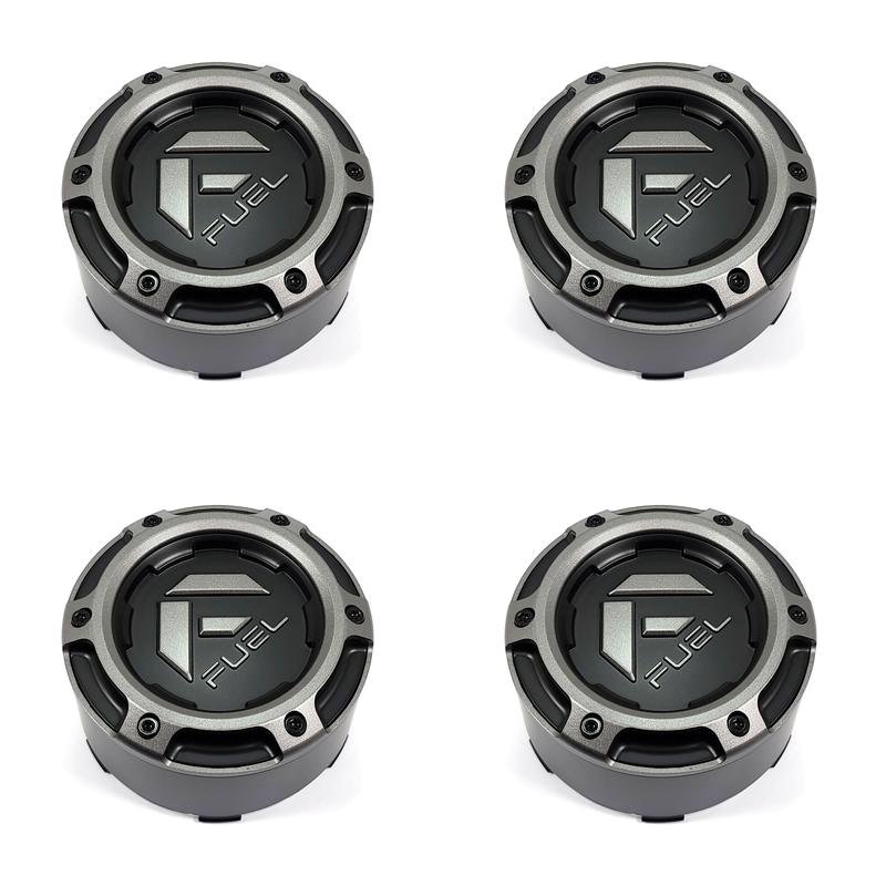 4x Fuel Off-Road Wheels Matte Gunmetal Gray/Black Wheel Center Hub Caps 5-1/4"OD Snap-In for 8x180 8x170 D762 Clash D681 Rebel D679 Rebel D680 Rebel