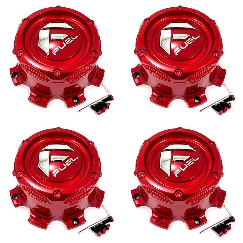 4x Fuel Off-Road Wheels Gloss Red Wheel Center Hub Caps 8"OD 1-3/4"H Bolt-On Open-End, Closed-End 1001-63GQCKIT5