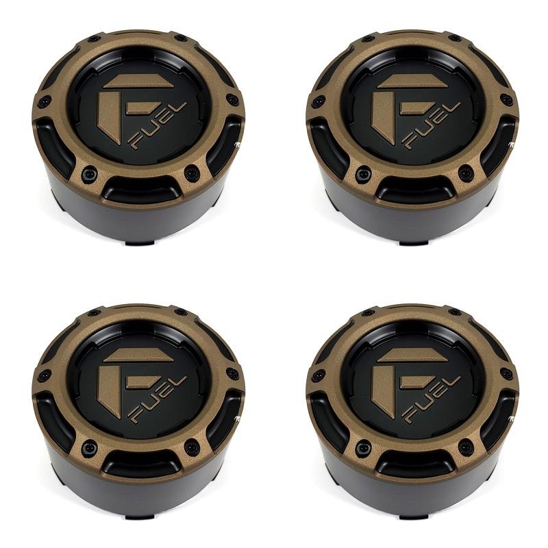 4x Fuel Off-Road Wheels Matte Black, Bronze Wheel Center Hub Caps 5-3/8"OD Snap-In for 8x180 8x170 D762 Clash D681 Rebel D679 Rebel D680 Rebel