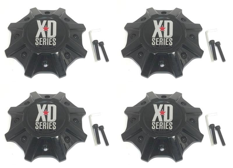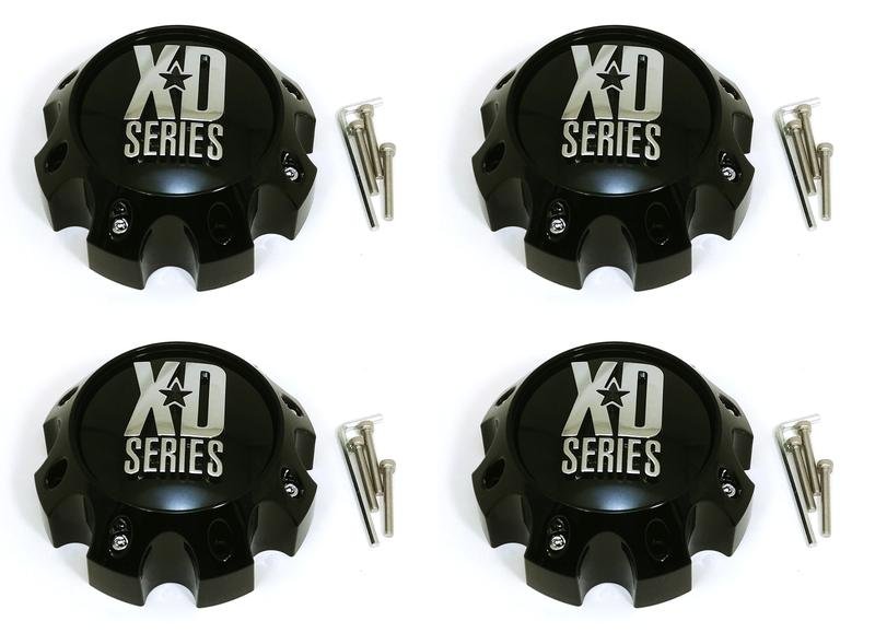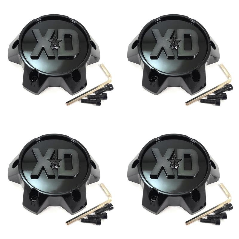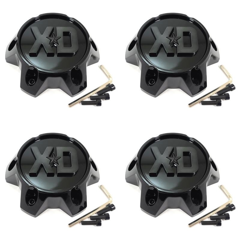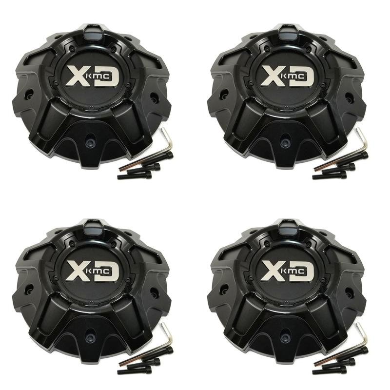 4x XD Series (by KMC) Gloss Black Wheel Center Hub Caps Bolt-On for 5x5 5x127 5x5.5 5x139.7 6x5.5 6x139.7 6x135 8x6.5 8x165.1 8x170 8x180 5x135 5x150 6x120 5x4.5 5x114.3 XD825 Buck 25 XD202 Buck 25